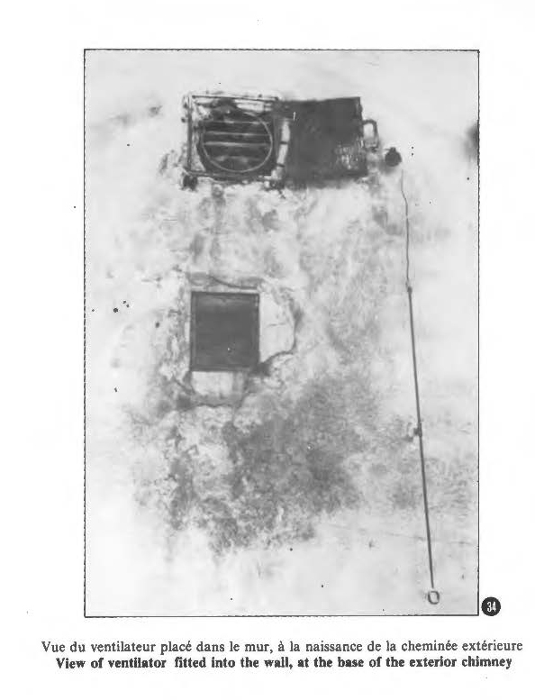 Il a pourtant lu le rapport des légistes indiquant que "cette pièce est fermée d'une porte à paroi épaisse, garnie intérieurement d'une plaque de tôle ripolinée (photo 47). Les joints, qui étaient garnis de feutre (on trouve encore les pointes qui le fixaient), rendaient la fermeture étanche. Trois verrous (photo 48), celui du milieu avec une vis de serrage, permettent la clôture hermétique de cette pièce."