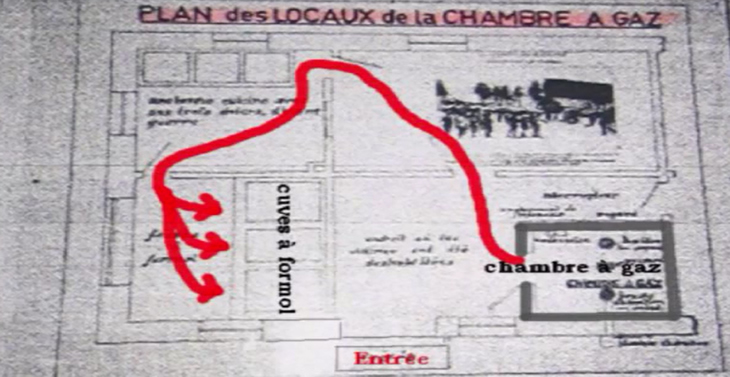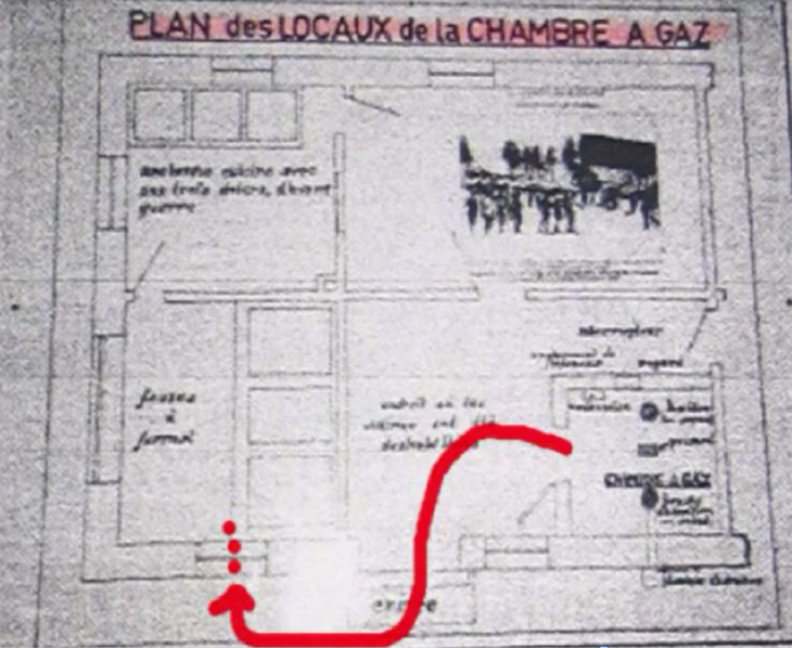 Un argument répété par Faurisson est que la porte de la chambre à gaz n'était pas suffisamment étanche, faute d'une "d’une porte d’acier à volant comme on en voit aux sous-marins."
